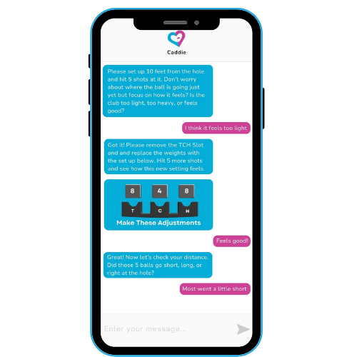 - If you putt consistently short or long, Caddie adjusts the weight to fine-tune your swing speed and distance control.